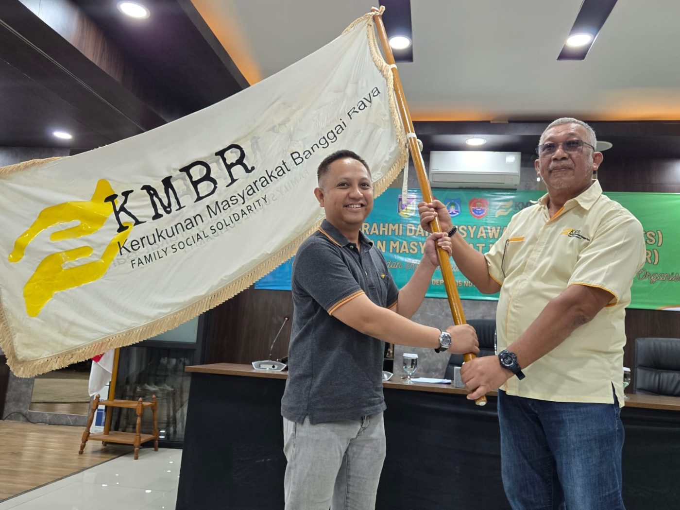 Affan Nurachman Lambaga (kiri) terpilih sebagai Ketua Kerukunan Masyarakat Banggai Raya (KMBR), Sabtu (15/11/2025). (Foto : IST)