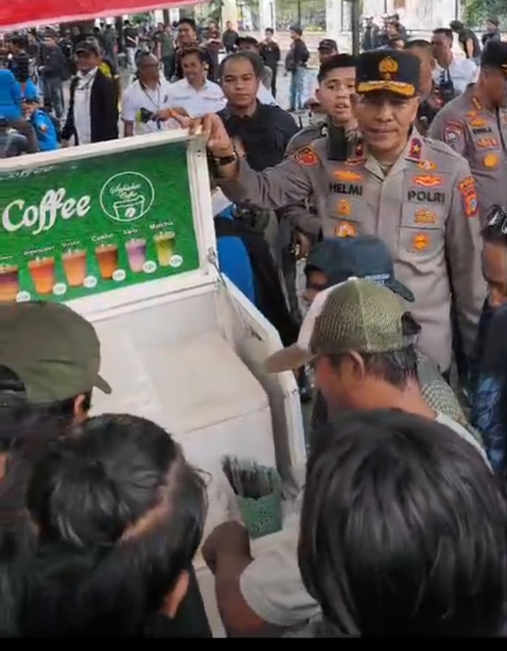 Di balik panasnya aksi dalam menyuarakan aspirasinya, ada sosok jenderal polisi yang menarik perhatian. Ia adalah Brigjen Pol Dr. Helmi Kwarta Kusuma Putra Rauf, S.I.K., M.H., putra daerah asal Luwuk Banggai yang kini menjabat Wakapolda Sulteng. Ia turun langsung memimpin pengamanan aksi sekaligus berbaur dengan masyarakat.