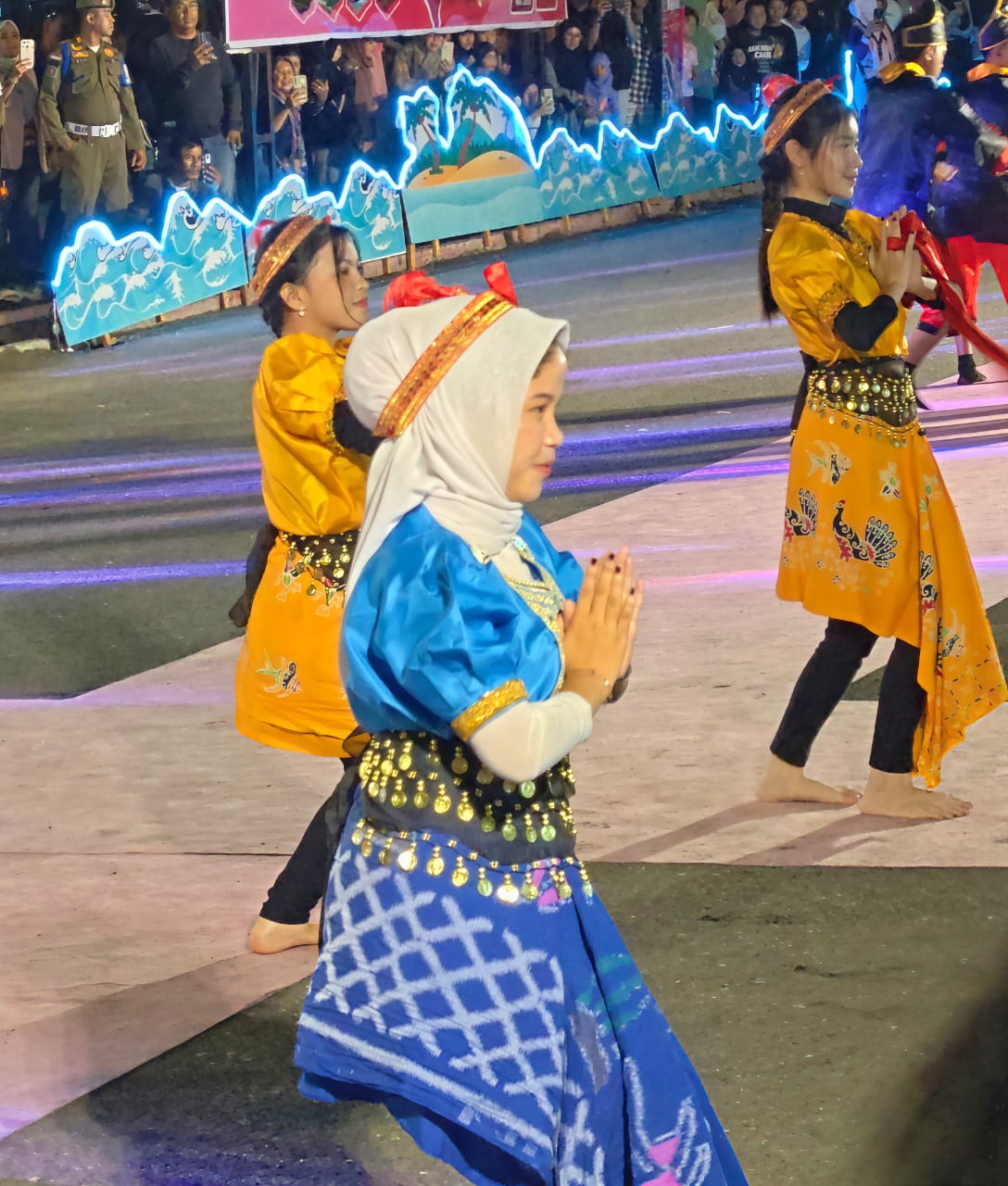 Rangkaian Opening Ceremony Festival Teluk Lalong telah dimulai pada sore hari dengan melangsungkan karnaval budaya dari 24 Kecamatan yang ada di Kabupaten Banggai.