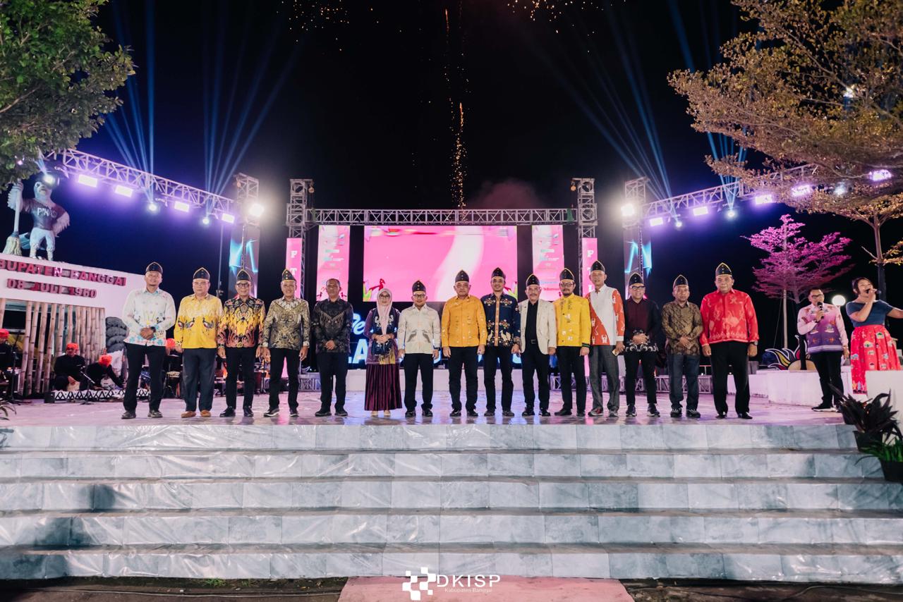 Setelah dibuka dengan resmi acara dilanjutkan dengan menyaksikan tarian-tarian dan melalukan kunjungan ke stand ekonomi kreatif yang ada di sekitar venue Festival Teluk Lalong. *