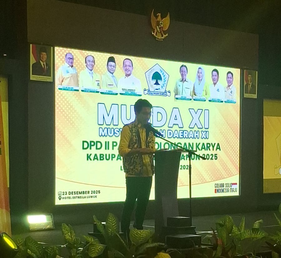 BANGGAI TIMES – Kader muda Partai Golkar Kabupaten Banggai, Moh. Panji Syahputera Tamorek mencuri perhatian dalam pelaksanaan Rapat Pimpinan Daerah (Rapimda) dan Musyawarah Daerah (Musda) XI DPD II Partai Golkar Banggai. Di usia yang baru menginjak 25 tahun, Panji dipercaya sebagai Ketua Panitia Pelaksana dua agenda besar partai berlambang pohon beringin tersebut.