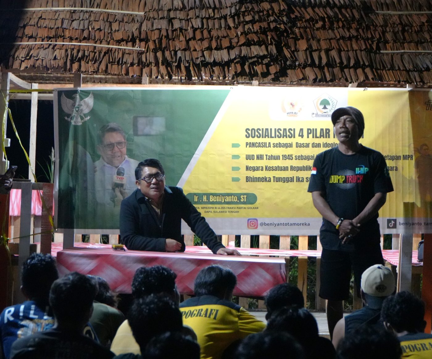 Beniyanto Tamoreka menggelar sosialisasi Empat Pilar MPR RI pada Selasa, 9 Desember 2025, di Desa Momo, Kecamatan Mamosalato, Kabupaten Morowali Utara. (Foto : IST)