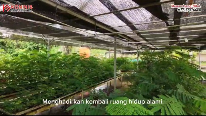 Ribuan pohon kini menghijaukan kembali lahan bekas tambang melalui proses reklamasi yang sistematis.