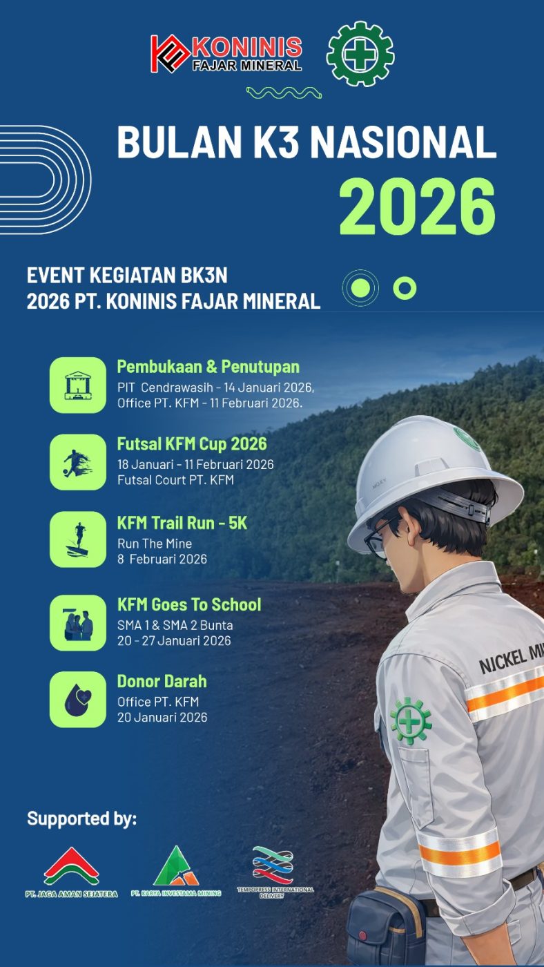 Dengan mengusung semangat “Safety is not just a rule, it’s our culture”, PT Koninis Fajar Mineral mengajak seluruh insan KFM dan mitra kerja untuk berpartisipasi aktif, menjunjung sportivitas, serta menjaga komitmen terhadap penerapan K3 demi terciptanya lingkungan kerja yang aman, sehat, dan produktif. *