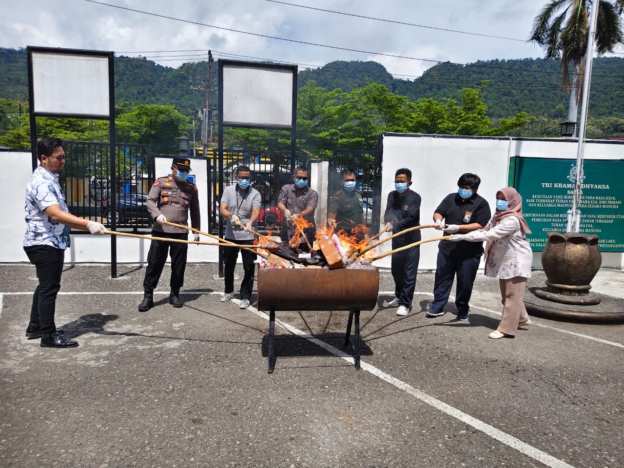 Seluruh barang rampasan tersebut dimusnahkan sesuai amar putusan Pengadilan Negeri Luwuk yang menyatakan barang bukti dirampas untuk dimusnahkan dengan cara diblender dan dibakar.